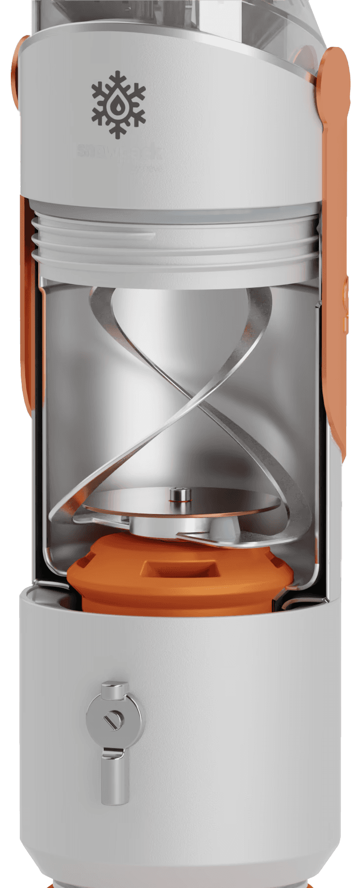 The SnowPack by névé is a compact device that converts snow into clean drinking water, designed for ski mountaineers and emergency responders in remote environments.